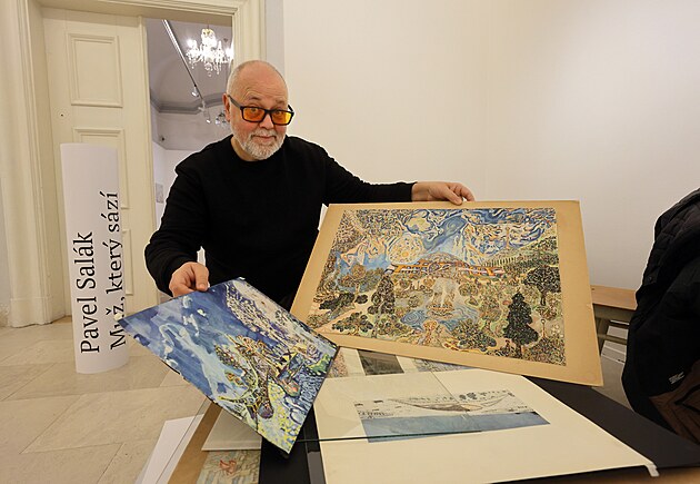 Aleš Palán, kurátor výstavy s názvem Pavel Salák. Muž, který sází borovici blatku v chebské galerii výtvarného umění (15. ledna 2025)