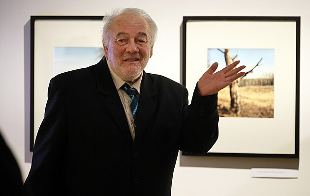 Pavel Salák (na snímku) vystavuje své obrazy v galerii výtvarného umění v Chebu. Expozice má název Pavel Salák. Muž, který sází borovici blatku. (15. ledna 2025)