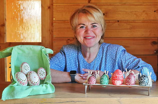 A protože její tvůrčí záběr je v tomto směru poměrně široký, začíná s prvními kousky už v lednu, kdy jaro ještě ani zdaleka není ve vzduchu. Vejce zdobí voskem, škrabáním a tvoří také ubrousková a vrtaná, neboli madeirová vejce. Je přitom naprostý samouk, jen na úplném začátku ještě jako malé děvče ji ke zdobení přivedl a inspiroval otec.