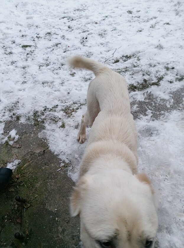 Pes vyhublý až na kost ze statku v Čichalově na Karlovarsku. Případ už řeší policie a veterináři.