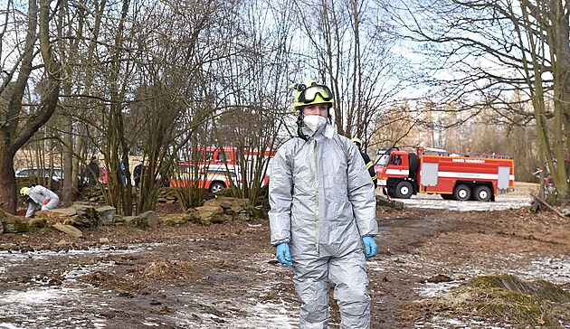 Hasiči pomáhali na statku v Čichalově, kde bylo potřeba vyprostit uhynulá zvířata ze špatně přístupných prostor. Zasahovali v ochranných oblecích. (15. ledna 2025)