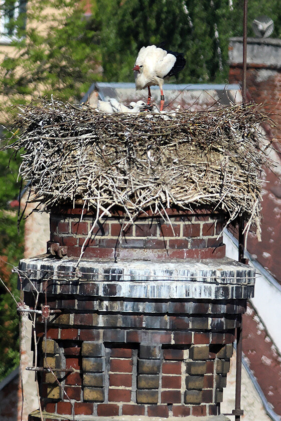 Vedle péče o mláďata čelí chebští čápi útokům jiného ptačího páru.