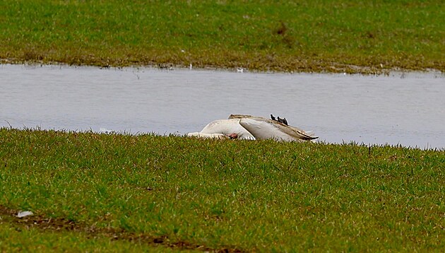 Uhynulá labuť nedaleko Dřenice na Chebsku.