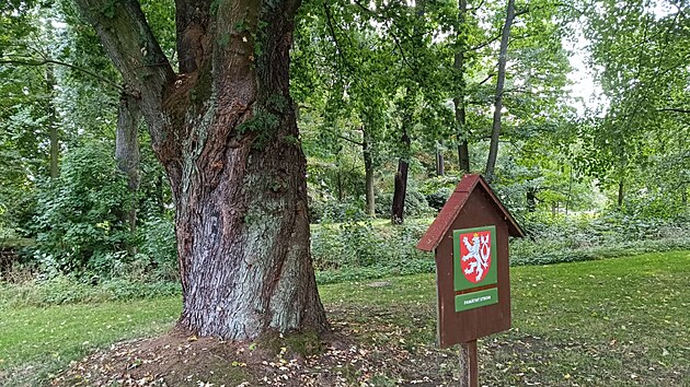 Památný strom roste v sokolovských Husových sadech těsně vedle toboganu.