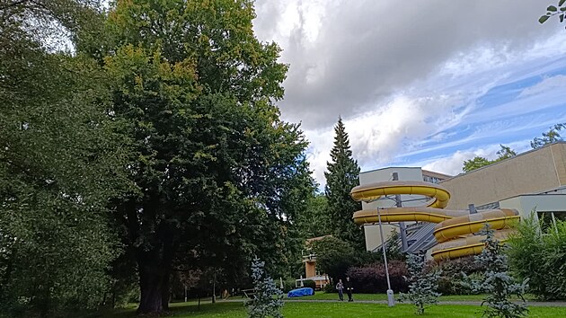 Památný strom roste v sokolovských Husových sadech těsně vedle toboganu.