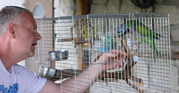 Martin Procházka má ve voliérách a klecích na šest desítek papoušků.
