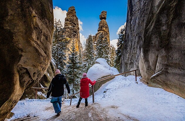 V Adršpachu nasněžilo a mrzne, na prohlídku skalního města dorazily jen desítky lidí. (17. února 2025)