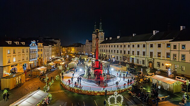 Adventní trhy budou na Velkém náměstí do 23. prosince. Ledová plocha bude v provozu až do 6. ledna. Bruslit se bude i na Štědrý den do 16 a na Silvestra do 20 hodin.