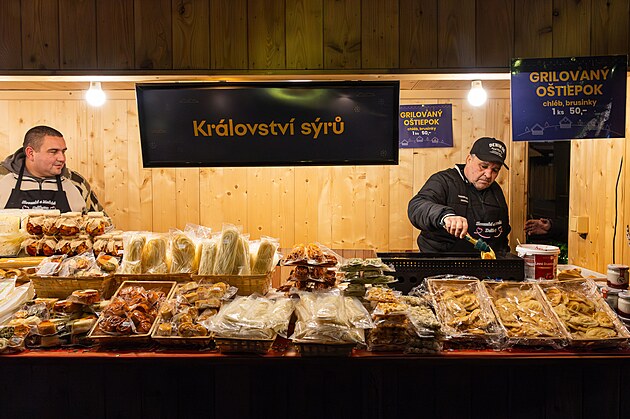 Stánek se sýry na hradeckém Velkém náměstí (3. prosince 2025)