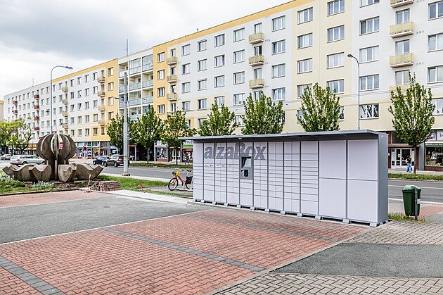 AlzaBox na třídě SNP v Hradci Králové nyní už má odstup od Preclíkovy sochy Květ Polabí.