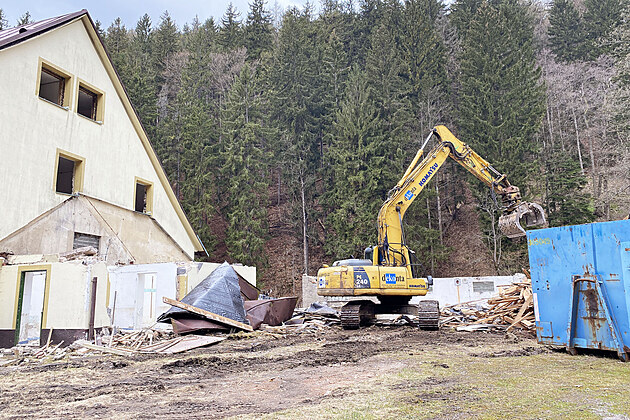 Demolice penzionu Mlýn v Herlíkovicích. (4. 5. 2021)