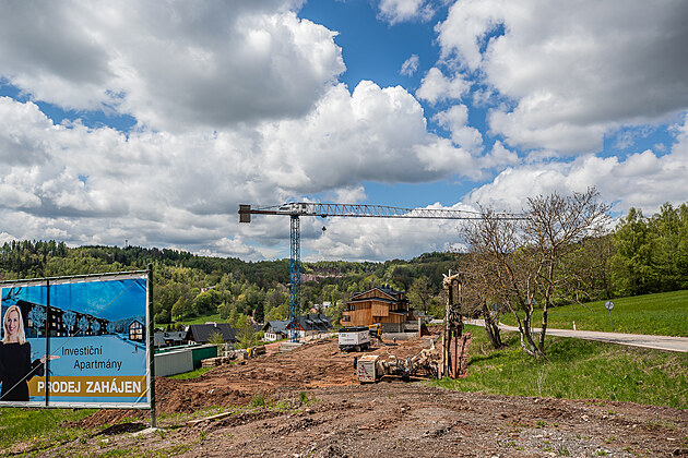 V krkonošském Černém Dole roste první ze sedmi apartmánových domů.
