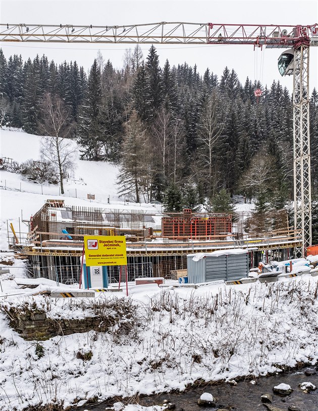Residence Vlčice s 23 apartmány vzniká nedaleko centra Pece pod Sněžkou. (7. ledna 2021)