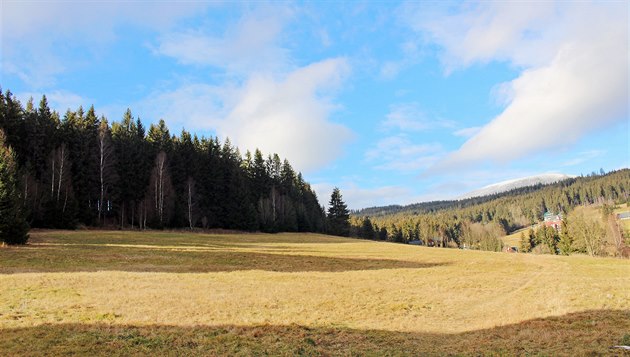Firma podnikatele Petra Svinky vlastní na okraji Pece pod Sněžkou 18 tisíc metrů čtverečních pozemků. Vystavět zde chce apartmánový projekt, který už několik let připravuje.