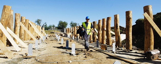 Stavba neolitického domu u nového muzea pravěku ve Všestarech na Královéhradecku