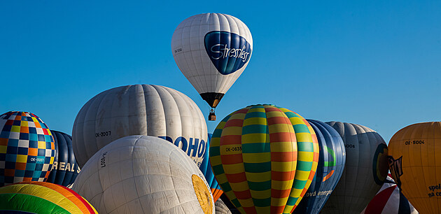 Balonová fiesta 2021: Z louky u ratibořického zámku vzlétlo 25 horkovzdušných balonů a letěly přes vodní nádrž Rozkoš. (2. 9. 2021)