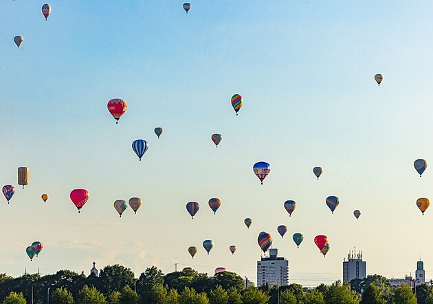 Vzduchoplavci startovali v pátek ráno z různých míst v Hradci a snažili se co nejvíce přiblížit Bílé věži.