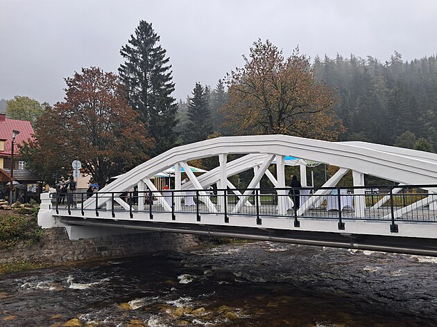 Bílý most ve Špindlerově Mlýně po opravách znovu slouží. (6. října 2025)