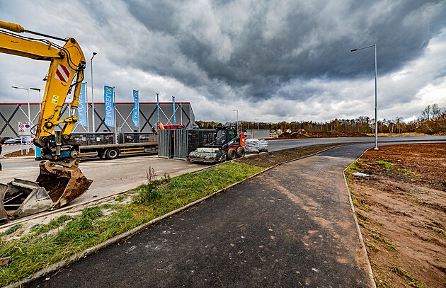 V obchodní zóně v Březhradě je téměř hotová silniční propojka. (20. listopadu 2024)