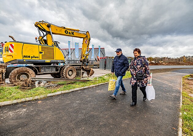 V obchodní zóně v Březhradě je téměř hotová silniční propojka. (20. listopadu 2024)