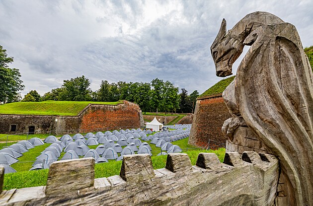 Příjezd fanoušků na festival Brutal Assault do josefovské pevnosti u Jaroměře