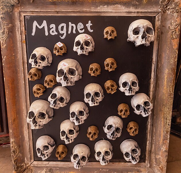 V Josefově jsou k mání lebky i další propriety. (6. srpna 2025)