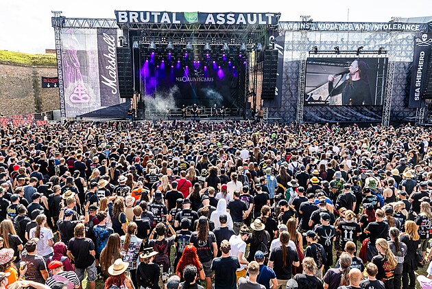 Fanoušci kapely Ne Obliviscaris na festivalu Brutal Assault (6. srpna 2025)