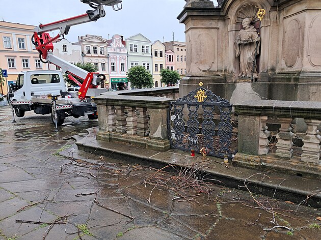 Roští spadané z čapího hnízda v Broumově (8. července 2025)