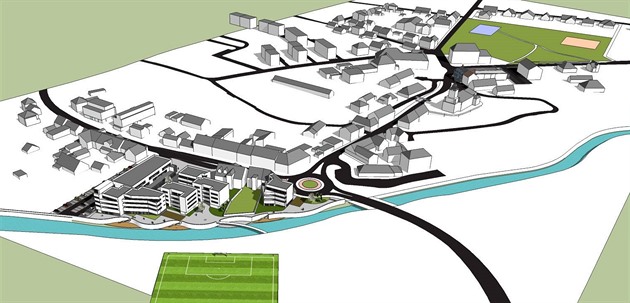 Ve studii architekt klade důraz na úpravu prostoru vedle radnice. Přestože ho místní nazývají náměstím, jde spíš o parkoviště. To se však má změnit. Radnice zde koupila a zbořila dům s velkým pozemkem a na jeho místě chce postavit nové bytové domy. Vzniknout má až 80 jednotek a v přízemí obchody.