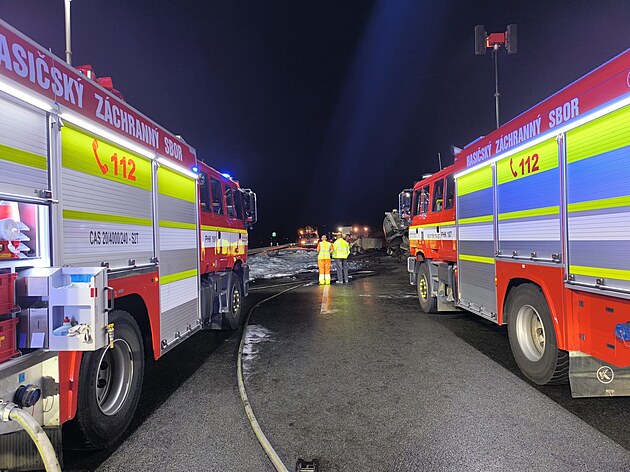 Požár cisterny se sazemi na D11 u Smiřic (27. srpna 2025)