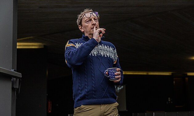 Ředitel Správy KRNAP Robin Böhnisch hovoří k demonstrantům, kteří protestují proti stavbě nové boudy v srdci Krkonoš.