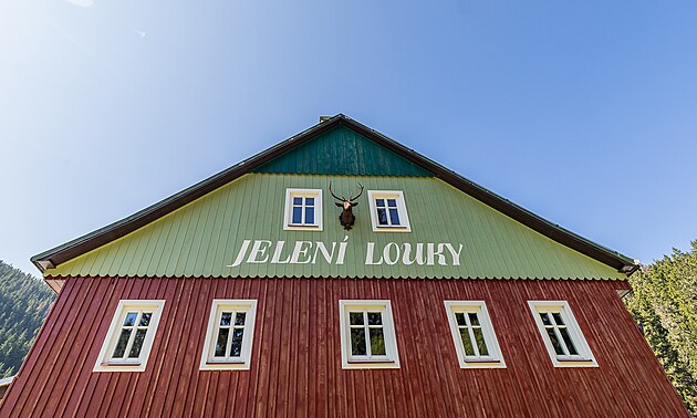 Chata Jelení louky v závěru Zeleného dolu nad Pecí pod Sněžkou (20. září 2024)