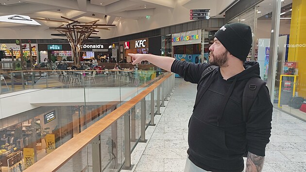 Muž ve světlém oblečení byl Ondřej Šuhájek. Dítěte si všiml ve chvíli, kdy vystupoval z výtahu. Do jídelní zóny právě mířili se svou kamarádkou a jejími dvěma dětmi na oběd.