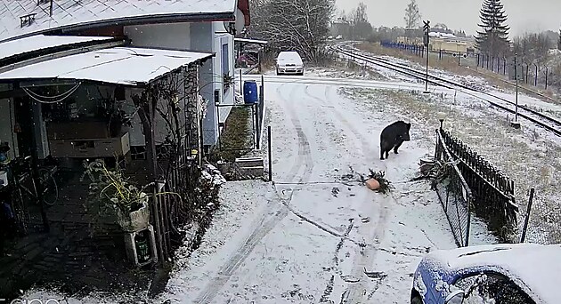 Divočák zaútočil na psa za plotem, bránu s přehledem rozrazil.