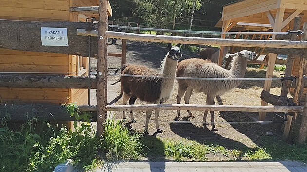 Od března přibyly v zahradě Domova sociální péče Tmavý Důl také lamy, na klienty si teprve přivykají. (11. srpna 2025)