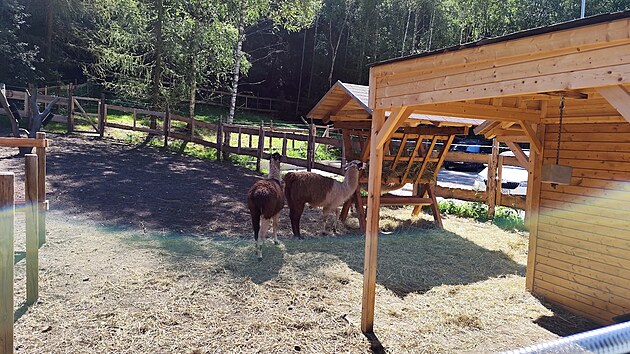 Od března přibyly v zahradě Domova sociální péče Tmavý Důl také lamy, na klienty si teprve přivykají. (11. srpna 2025)