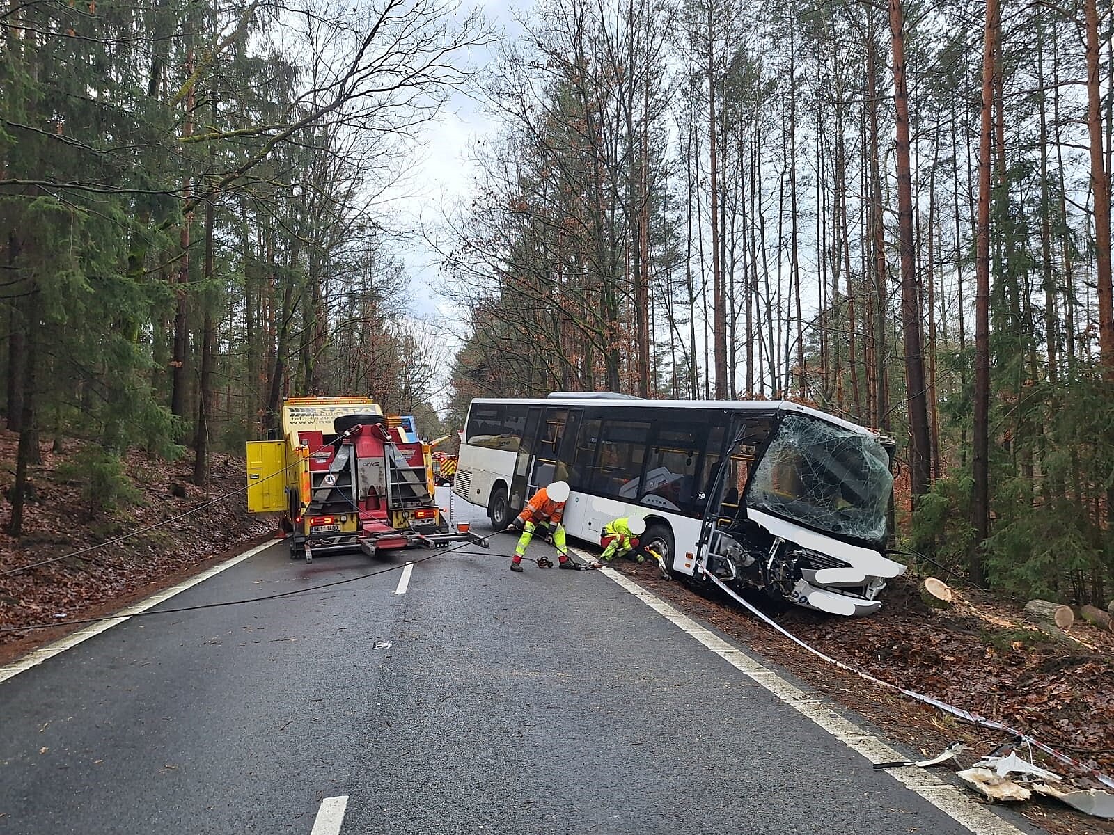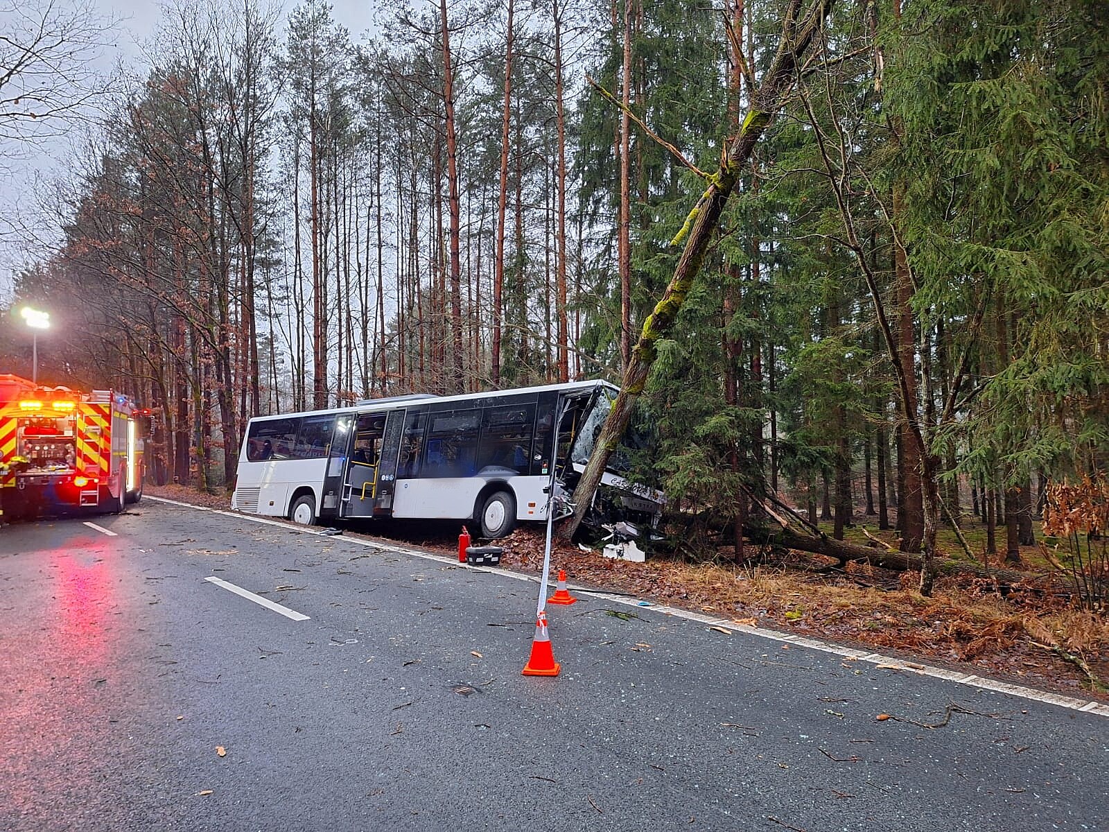 U Borohrádku narazil autobus do stromu. (24. ledna 2024)