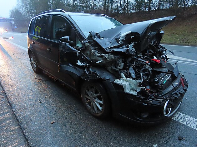 Nehoda osobního auta a cisterny s kyselinou sírovou u Náchoda (23. prosince 2024)