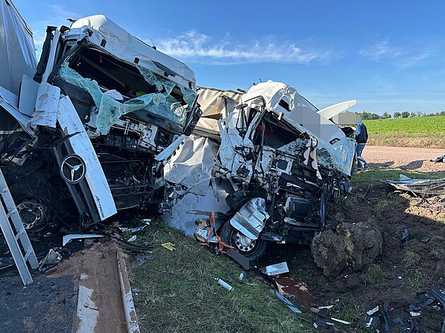 Nehoda kamionů a osobního auta na obchvatu Jaroměře (16. října 2024)
