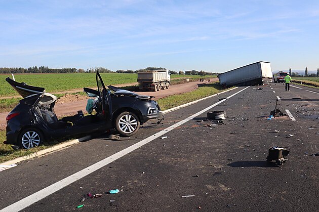 Nehoda kamionů a osobního auta na obchvatu Jaroměře (16. října 2024)
