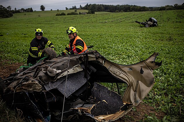 Auto se při nehodě u Chvalkovic rozpáralo o strom. (22. září 2025)