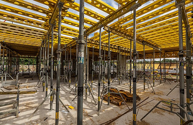 Hradecká fotbalová aréna přesně rok před dokončením (28. června 2022)