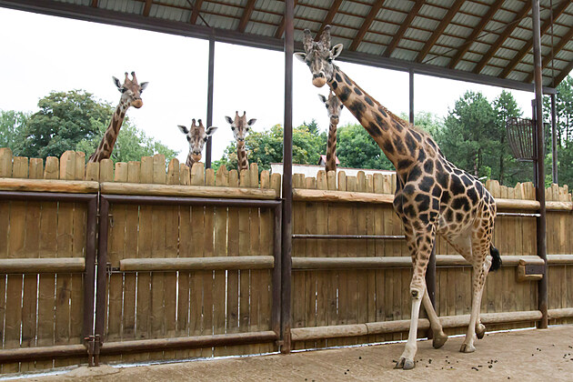 Nový samec žirafy Rothschildovy připutoval z Plzně do dvorské zoo, brzy se podívá do výběhu (14. 7. 2021).