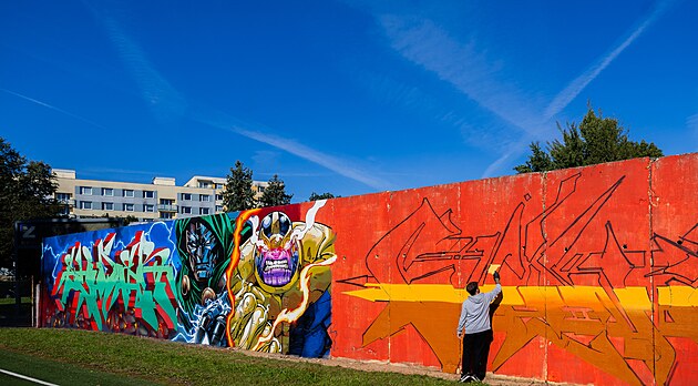 Profesionální umělci z Německa SLIDER & ELFY a slovenští výtvarníci KAISY & ANIMO vyzdobili zeď mezi hřištěm střední školy a areálem stavební firmy ve Dvoře Králové. (28. září 2025)