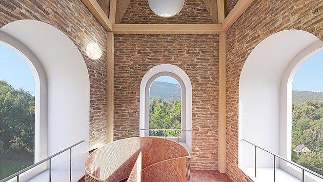 Vizualizace vyhlídky z evangelického kostela v Rudníku
