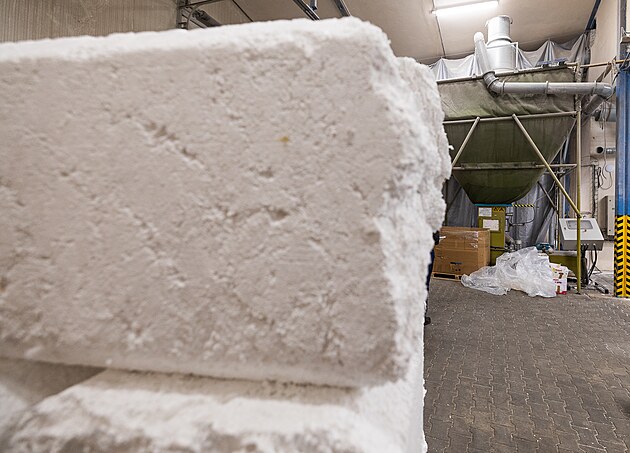 Surovina získaná ze sběrných dvorů a zhutněná do bloků se nejprve drtí.