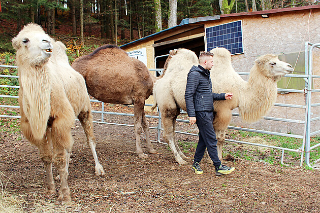 Štěpán Vlček na své farmě, kde chová velbloudy a lamy.
