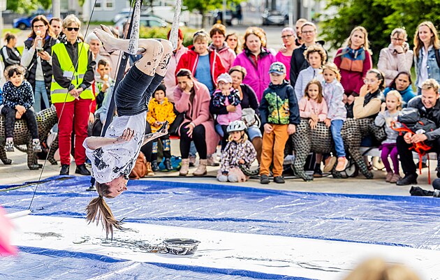 Vystoupení Elišky Brtnické Black Rain, akční malířská improvizace na festivalu Cirk-UFF (29. května 2025)