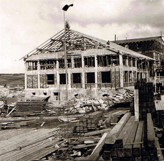 Snímek je ze slavnosti dokončení hrubé stavby Luční boudy, která vyhořela v říjnu 1938.