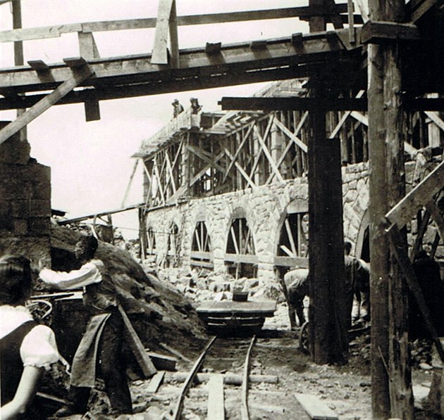 Dráha končila až u stavby Luční boudy, pracovali tam nuceně nasazení dělníci.